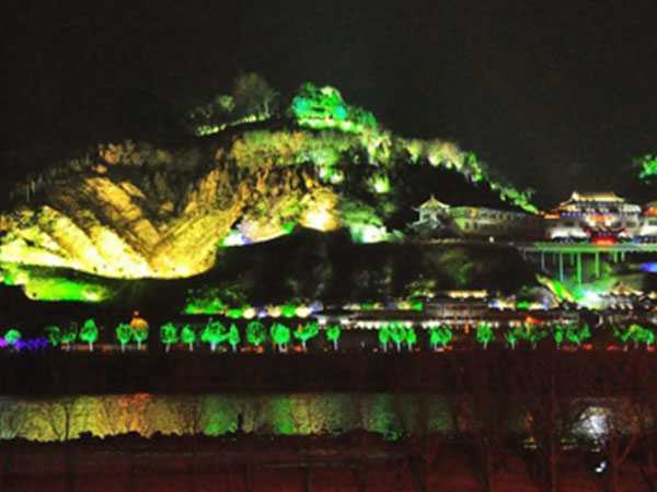 山顶部分通常是供远距离观看,照明亮度宜适当高一些;山脊部分往往是细节丰富、承载自然风格的部分,应有针对性地选择照明手法,细致刻画山脊构件及山体景观(树木、建筑等),用强调性的照明手法将山脊上主要的部分做突出表现;山脚是近人部分,对该部分的照明表现是要完成山脚形象的完整性,对它们设置的照明要顾及到人们近距离处观赏时的感受,在照明的亮度、光色调、灯光投射方向等方面的配置,应以人的视觉舒适为目标。