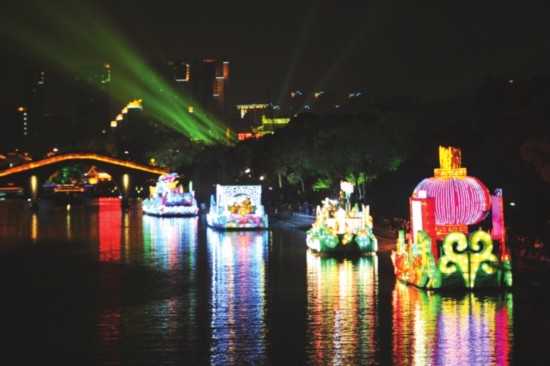 第18届“东方水城”中国苏州国际旅游节,沿岸的13艘彩船集体亮灯,让等候在岸边的市民抑制不住心中的兴奋,大声欢叫拍照。本届旅游节一改以往护城河巡游的形式,将彩船作为固定景点,让市民能够近距离参观。开幕式后,彩船展示将持续至5月3日,每天的亮灯时间为19:00至21:00,逢节假日和周末会延长半小时。13艘彩船分别停靠在人民桥、南园桥和觅渡桥三个区域。其中“苏式生活”展示区有“情定金鸡湖”号、“美好江苏”号、“沙洲优黄”号和“周庄”号;“世界园林”展区内有“海淀”号和“苏州园林”号;“丝绸之路”展区有“上海”号、“澳门”号、“东森”号、“杭州”号、“南京”号、“金门酒厂”号、“马来西亚”号。